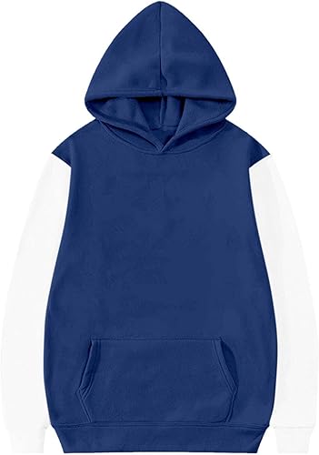 Girls Casual Hoodies Color Block Long Sleeve Cute Pullover Tops Pockets Hooded Fashion Sweatshirt for 3-14 Years(03-blue,7-8 Years)
