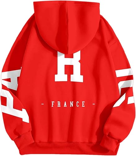 Girls Casual Hoodies Fall Winter Long Sleeve Fashion Letter Graphic Hooded Sweatshirt with Pockets Kids Pullover Tops (Red #1, 14-16 Years)