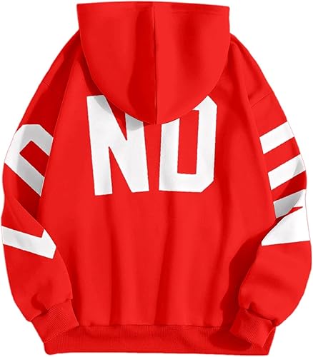 Girls Casual Hoodies Fall Winter Long Sleeve Fashion Letter Graphic Hooded Sweatshirt with Pockets Kids Pullover Tops (Red #2, 11-13 Years)