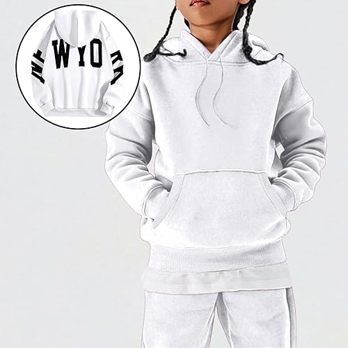 Girls Casual Hoodies Fall Winter Long Sleeve Fashion Letter Graphic Hooded Sweatshirt with Pockets Kids Pullover Tops (White #3, 11-13 Years)