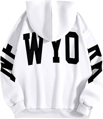 Girls Casual Hoodies Fall Winter Long Sleeve Fashion Letter Graphic Hooded Sweatshirt with Pockets Kids Pullover Tops (White #3, 7-8 Years)