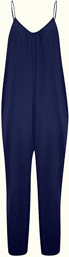 Features: This soft and comfy overall features a slouchy, relaxed-fitting design with a dropped crotch and convenient side pockets. Deep V neck, sleeveless,long pant, back pocket decoration,loose casual jumpsuit with spaghetti strap, soft overalls ,with two side big pockets. Create a flattering loose comfy effect.