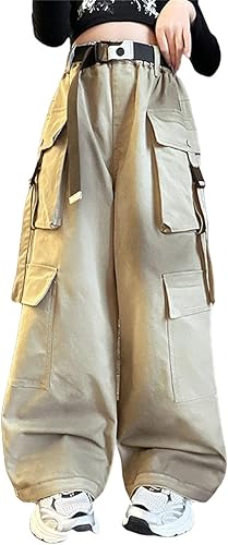 Girls Casual Overalls Spring Summer and Autumn New Models for Middle and Large Children with 9 Month Old Girl Clothes(Khaki,5-6 Years)