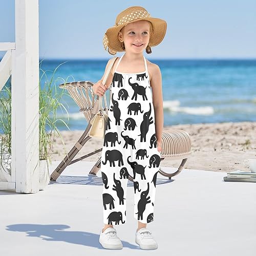 Girls' Casual Sleeveless Jumpsuits Black Elephant Pattern Kids Loose Romper Long Pants for 1-6 Years(Multi,4T)
