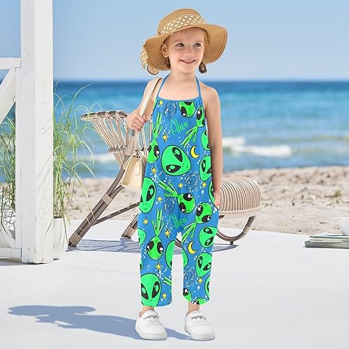 Girls' Casual Sleeveless Jumpsuits Bright Alien Space Star Pattern Kids Loose Romper Long Pants for 1-6 Years(Multi,1T)
