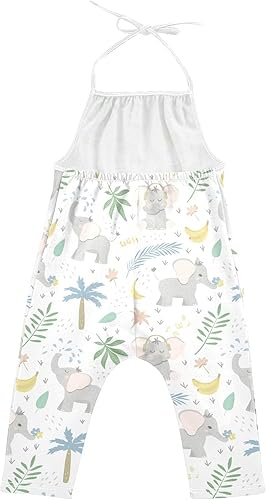 Girls' Casual Sleeveless Jumpsuits Elephant Jungle Kids Loose Romper Long Pants for 1-6 Years(Multi,1T)