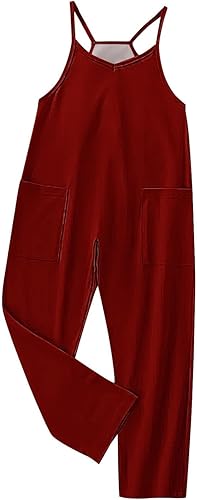Features: This soft and comfy overall features a slouchy, relaxed-fitting design with a dropped crotch and convenient side pockets. Deep V neck, sleeveless,long pant, back pocket decoration,loose casual jumpsuit with spaghetti strap, soft overalls ,with two side big pockets. Create a flattering loose comfy effect.