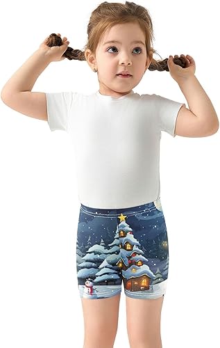 Adorable Christmas Scene Snowman print adds festive charm to girls' bike shorts, dance and cartwheel outfits.