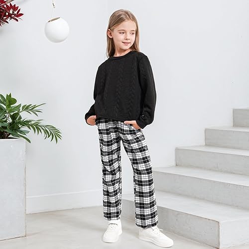 Unique Design: This two pieces girls outfit includes solid long sleeve tops with crew neck, stylish plaid pants with pockets. The girls fall clothes will bring lots of compliments to your little girl.