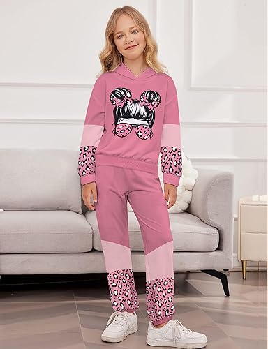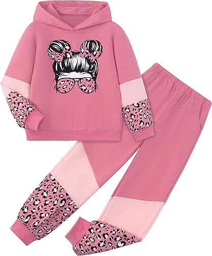 Design:This girls outfits elevate your girl's wardrobe with this trendy two-piece set, featuring a hooded sweatshirt with a cool girl print and contrast sleeves,making it a perfect choice for any young girl.Paired with fitted contrast leggings, unique design make your little girls look adorable and fashion.