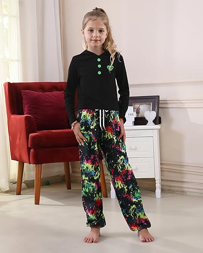 Stylish Design: The girls hooded top features a cute “Your Girl” embroidered heart badge, decorative contrasting buttons at the neckline, and colorful printed pants with large side pockets, making it the ideal fashionable outfit for girls