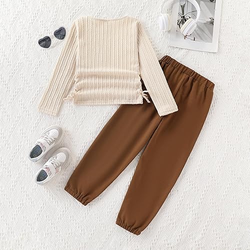 Ruched Top: The long sleeve tee features a wide round neck with a small V-cut detail at the center, adding a trendy touch to this cute girl clothes set. Side drawstrings allow for an adjustable ruched look, making it both stylish and flattering—perfect for layering or wearing on its own
