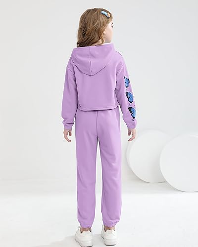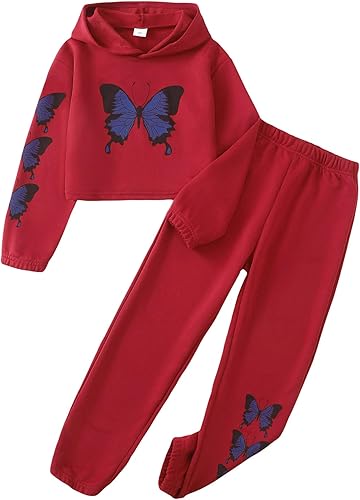 Package: the two pieces tween girls clothing include butterfly print crop top hoodie and sweatpants.These teens girls clothes are perfect outfits for your cute girls in festival and birthday.