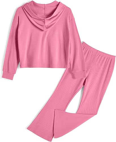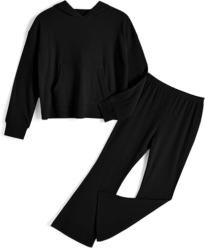 Features: crop top -- casual looselong sleeve top, hooded pullover sweatshirt, fitted; Flared bottom -- mid rise, elastic waistband, skinny fit flare leggings pants set.