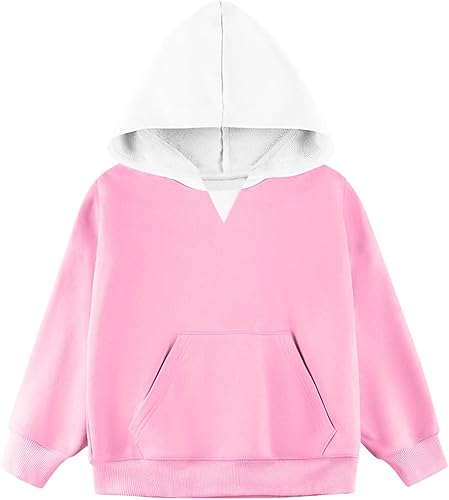 Girls Color Block Hoodies Sweatshirts Loose Long Sleeve Pullover Casual Fall Winter T-Shirts Tops for 2-15 Years(01 Pink,11 Years)