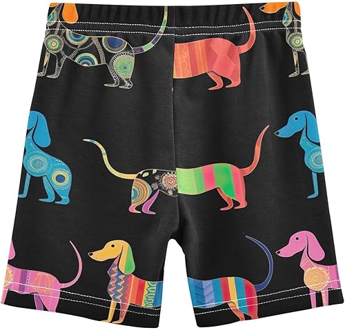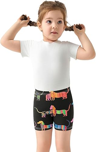 Cute colorful dachshund dogs print makes these girls bike shorts a fun and adorable choice for summer clothes.