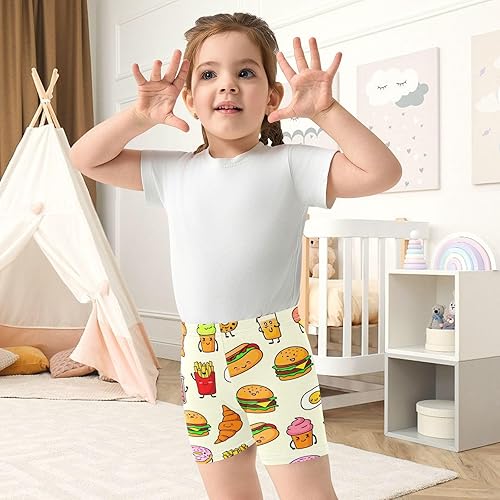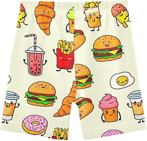Fun cute burgers print adds playful style, ideal for dance, biking, gymnastics, and daily activities.