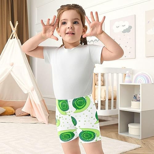 Cartwheel shorts with cute snails green print; perfect under dresses, skirts, for dance or gymnastics.