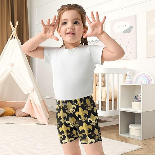 Stylish Gold Fleur De Lis Black print, ideal as bike shorts, dance shorts, gymnastics or under dress shorts.