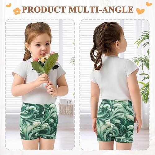 Trendy green marble texture print adds a stylish touch to girls' summer clothes and athletic shorts.