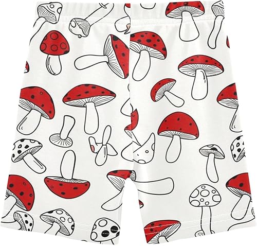 High-quality cotton bike shorts for girls with Mushroom Black White Red print, ideal for summer.