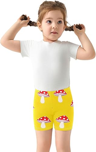 Cute mushroom print design adds fun style to shorts for under dresses or girls outfits.