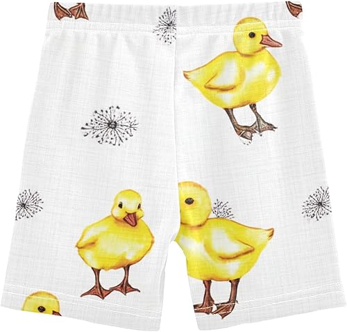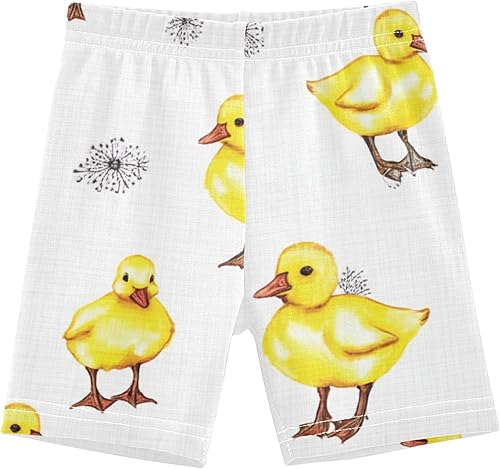 Cute yellow ducks print on white shorts, ideal for play, dance, cartwheel, gymnastics, and daily toddler essentials.