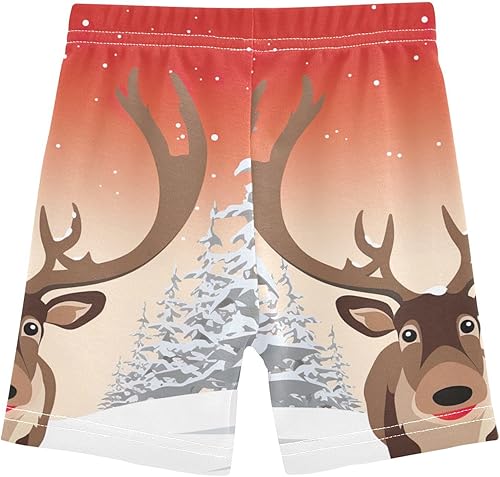 High-quality cotton spandex blend girls shorts with adorable reindeer snow print, soft and breathable for everyday wear.