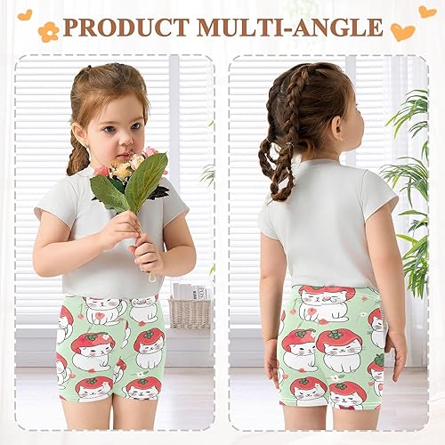 Fun white cats and strawberry hats print makes these shorts ideal for dance, gymnastics, biking, or daily wear.