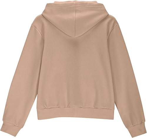 Girls Crop Hoodies 2025 Full-Zip Up Sweatshirts Jacket Teen Girls Hooded Tops Preppy Outfit with Pockets Kids Clothes(Khaki,4-5T)