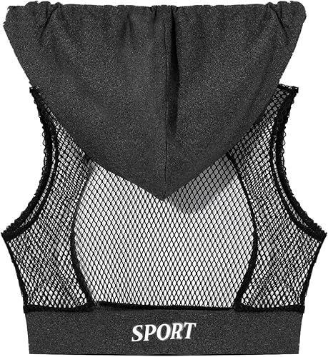 Crop mesh vest with hooded design and hollow out at back. Three piece suit make girl stylish and chic