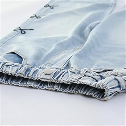 Girls Fashion Jeans Y2k Elastic High Waist Straight Wide Leg Denim Pants Kids Cute Bow Embroidered Denim Jeans(Blue,12-13 Years)