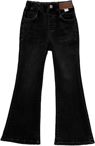 Girls Flare Jeans Vintage Aesthetic Bell Bottom Denim Pants Elastic High Waist Slim Fit Trendy Stretchy Y2K Clothes(Black,11-12 Years)