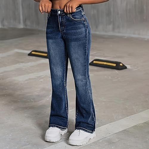 Girls Flared Jeans High Waisted Stretchy Bootcut Denim Pants Bell Bottoms with Pockets School Trousers for 7-14 Years(Dark Blue,11-12 Years)