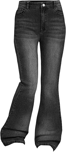 Girls Flared Jeans Teens High Waisted Slim Fit Bootcut Denim Pants Stretchy Bell Bottoms School Trousers for 8-14 Years(Dark Gray,8-9 Years)