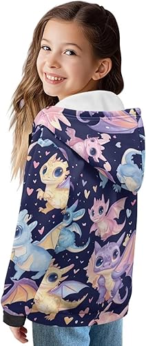 Girls Fleece Lined Zip Up Jacket Kids Hoodies & Sweatshirts with Kangaroo Pockets(Kawaii Dinosaur,Large)
