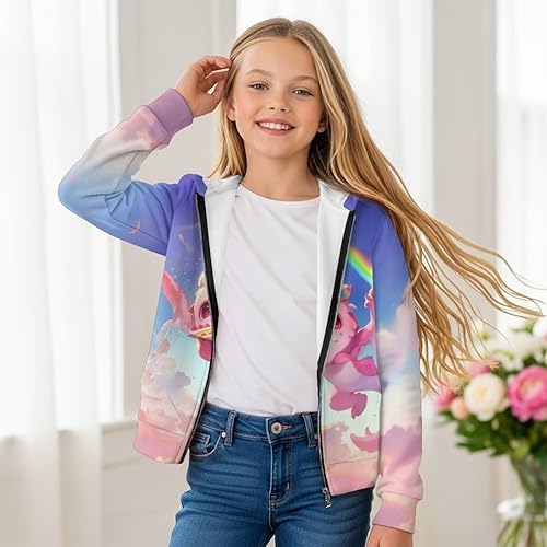 Girls Full Zip Hoodie Casual Long Sleeve Sweatshirts Cute Jackets with Pockets 6-16 Years(Rainbow Baby Dragon,14-16 Years)