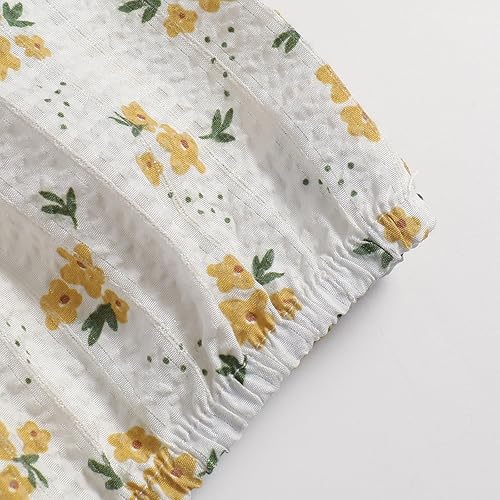 Feature: The top is designed with ruffled edges and off the shoulder, printed with small floral patterns. The short top is full of fashionable design sense, while the skirt is designed as a clean color short skirt with three buttons as decoration, full of fashion sense