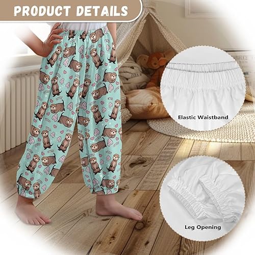 Girls Harem Pants Dancing Loose Yoga Pants 3-10Y Girl Comfy Lounge Sweatpants(Otter,3-5T)
