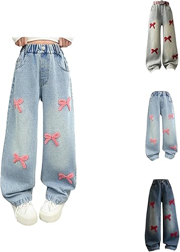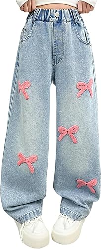 Unique Design:Featuring adorable pink bows along the seams, these jeans add a playful touch to any outfit.This unique design makes them a standout piece in your child's wardrobe, suit for casual outings and playdates