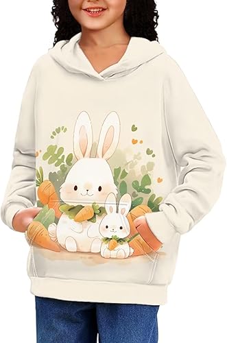 Girls Hoodies Pullover Loose Long Sleeve Hooded Sweatshirts Fall Spring Tees Hoodie with Crew Neck for Kids 7-14Y(Kapybara Mother Child Beige,14-16 Years)