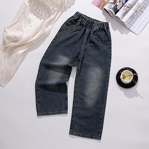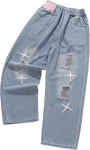Trendy Wide Leg Design: These light wash jeans feature a chic Wide leg pants, perfect for keeping up with the latest fashion trends for young girls.