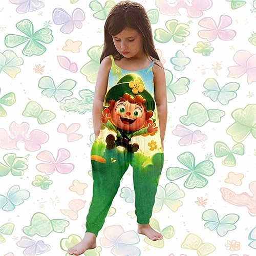 Girls Jumpsuit Suspenders Harem Pants St Patrick's Day Home Clothes Soft Cotton Lycra Blend Outfit for Kids Fantastic(Green,2-3T)