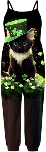 Girls Jumpsuit Suspenders Harem Pants St Patrick's Day Home Clothes Soft Cotton Lycra Blend Outfit for Kids Playful(Black,4-5T)