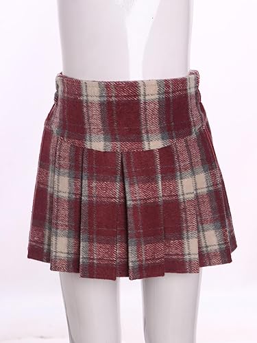 Girls Kids Pleated Plaid Skirts Mini Skorts School Cheer Leader Uniform Tartan Skirt for 2-14 Years(Red,11-12 Years)
