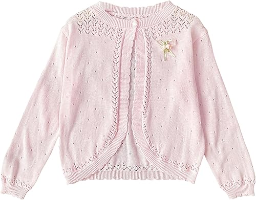 Girls Knitted Cardigan Kids Long Sleeve Dress Cover Up Solid Colour for Birthday Wedding Party(Pink,9-10 Years)