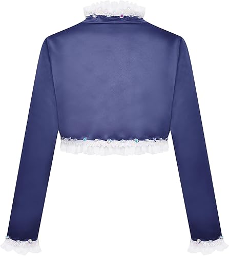 The wrap is designed with long sleeve, open front, ruffle trim and sparkly decorations, which is perfect accessory for party dress
