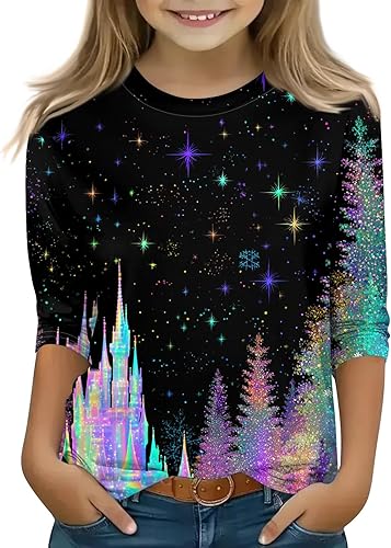 • The festive Christmas cat and dog print design adds a cheerful and playful touch to celebrations. This girls' 3/4-sleeve shirt is the perfect choice for seasonal events, school parties, and family gatherings. Featuring an adorable cat or dog immersed in a holiday scene, it's sure to make your child the center of attention throughout the festive season.