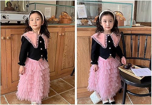 girl's outfits sets, fashion turndown collar long sleeve pullover shirt, match sweet lace skirt, makes your little one cute and charming.
