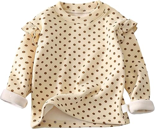 Girls Long Sleeve Tops Print Thermal Tops Kids Winter Undershirt Mock Shirts Slim Fit Tee Casual Loose Pullover(Light Pink,2-3T)